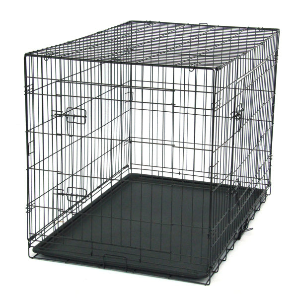 42 Inch Iron Foldable With Divider Plastic Tray Black Dog And Cat Cage