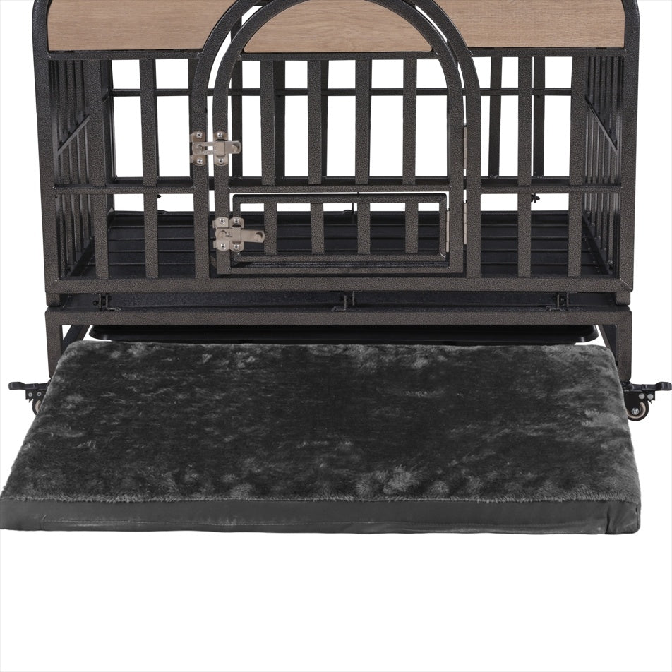 46in Heavy Duty Dog Crate, Furniture Style Dog Crate With Removable Trays And Wheels For High Anxiety Dogs