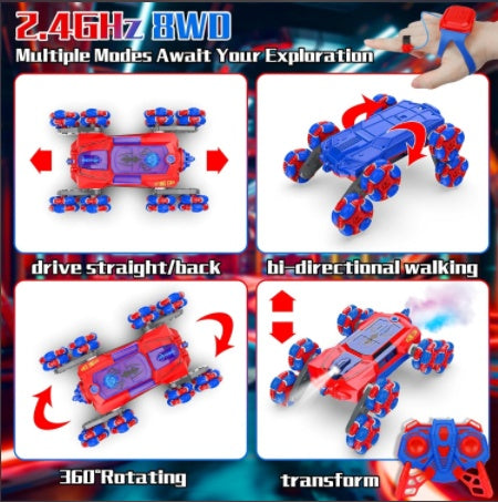 Boy Remote Control Car Gift, Spider Remote Control Car Toy, 2.4GHz 8WD Wall Mounted Remote Control Car, Suitable For Children's Gesture Sensing Remote Control Stunt Car, With Lighting And Music