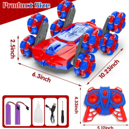 Innovative control options: traditional handheld remote control and gesture sensing remote control stunt car system. The latter allows for intuitive control through hand movements, providing a fresh and exciting way of interaction for remote-controlled cars. Both controllers require 2 1.5 V batteries (not included in the supply scope). Multiple operating methods can greatly stimulate children's exploration and cultivate their hand eye coordination ability.