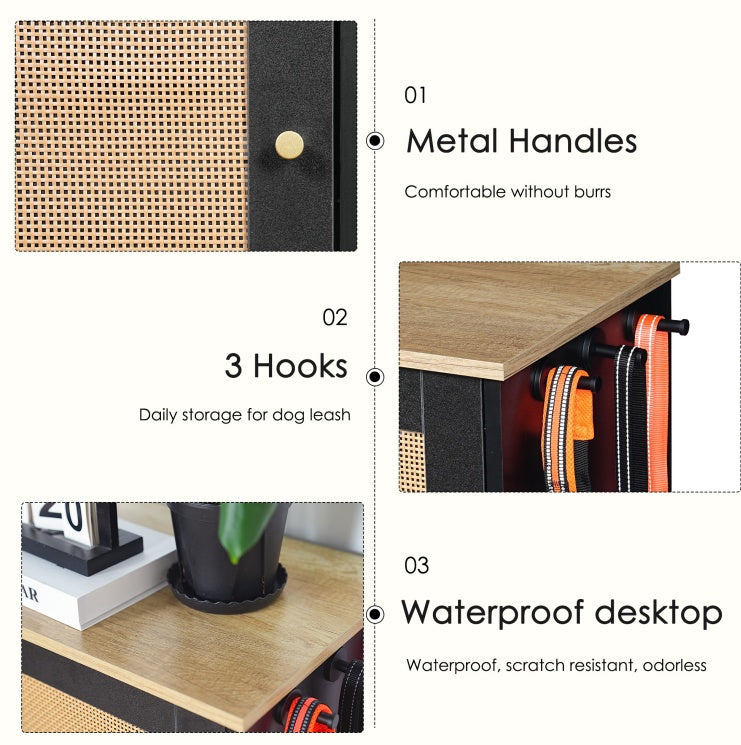 - Detail design: Compared to other dog feeding bowls, our dog feeding station has three hooks on the side for hanging pet collars and dog leather straps. This dog feeding station can store pet supplies, pet food, pet toys. With this dog food locker, you don't have to worry about clutter anymore.
