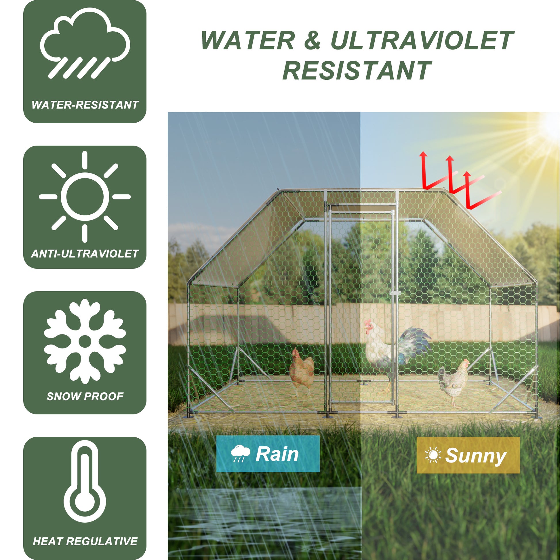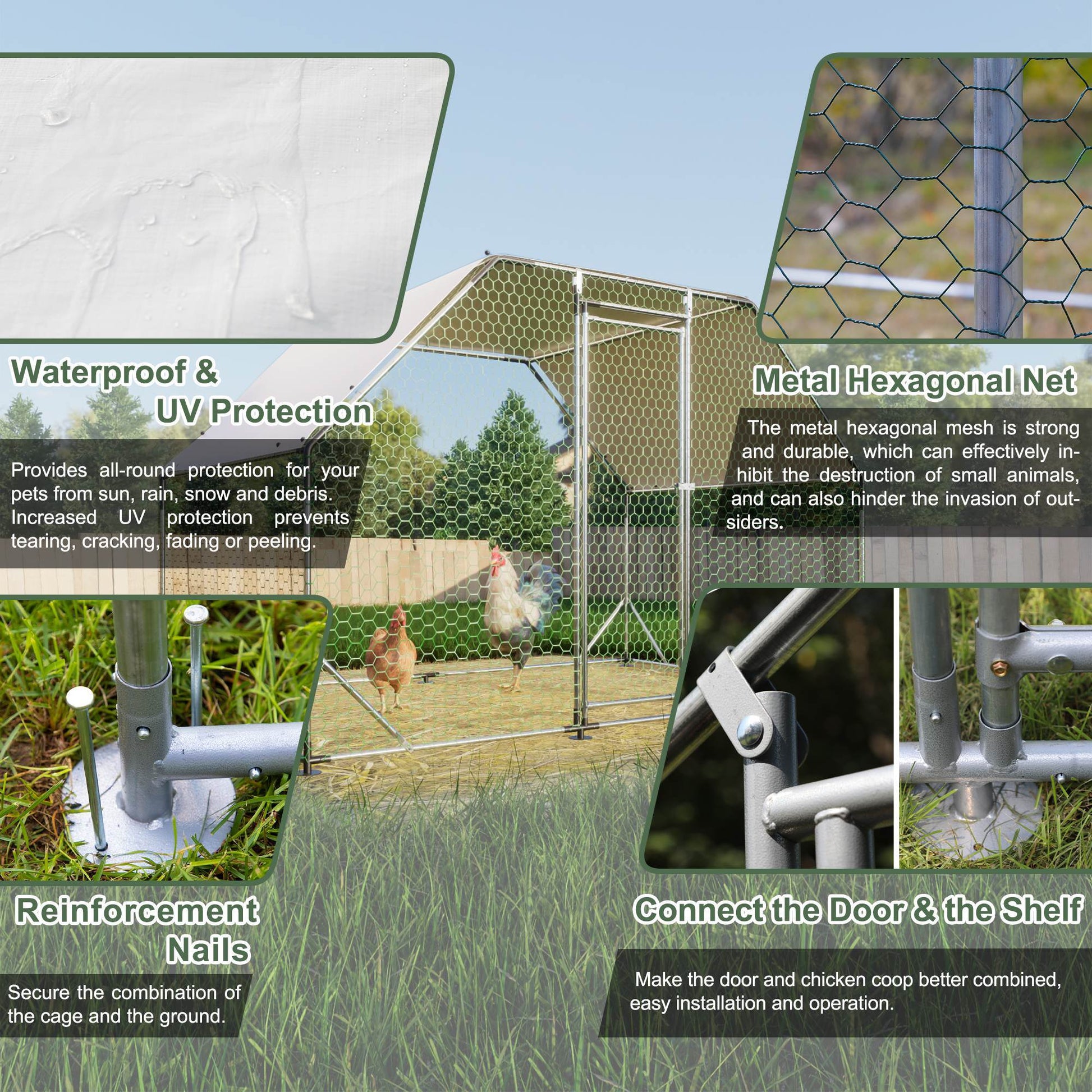 Galvanized Metal Walk-in Chicken Coop Cage With Poultry Run Hutch Hen House
