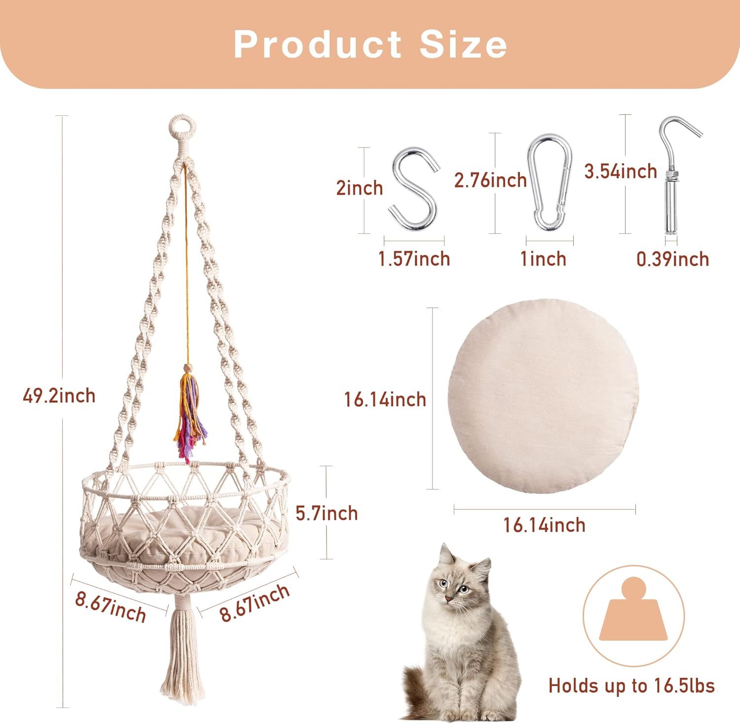 - Multi-location Use: The perfect gift for cats or cat lovers. The Boho macrame cat swing bed can become a lovely decor in your home. You can hang it anywhere on the wall or in front of the window, or add it to your living room as a beautiful piece. Your furry kids will also happily turn this bed that's warm and comfortable into their favorite spot.