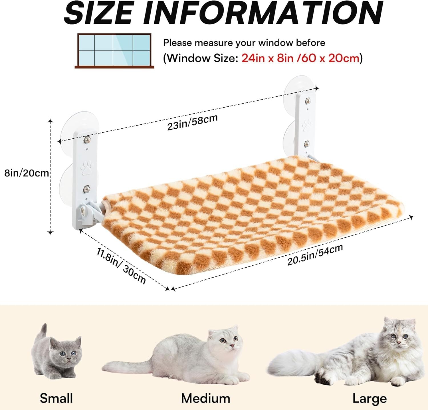 - Easy to Assemble:With illustrated assembly instructions included, you can assemble this well-designed cat window lounger in about 5 minutes. The cat window seat takes 24 inches by 8 inches of window space and is 20.5 inches by 11.8 inches when completed