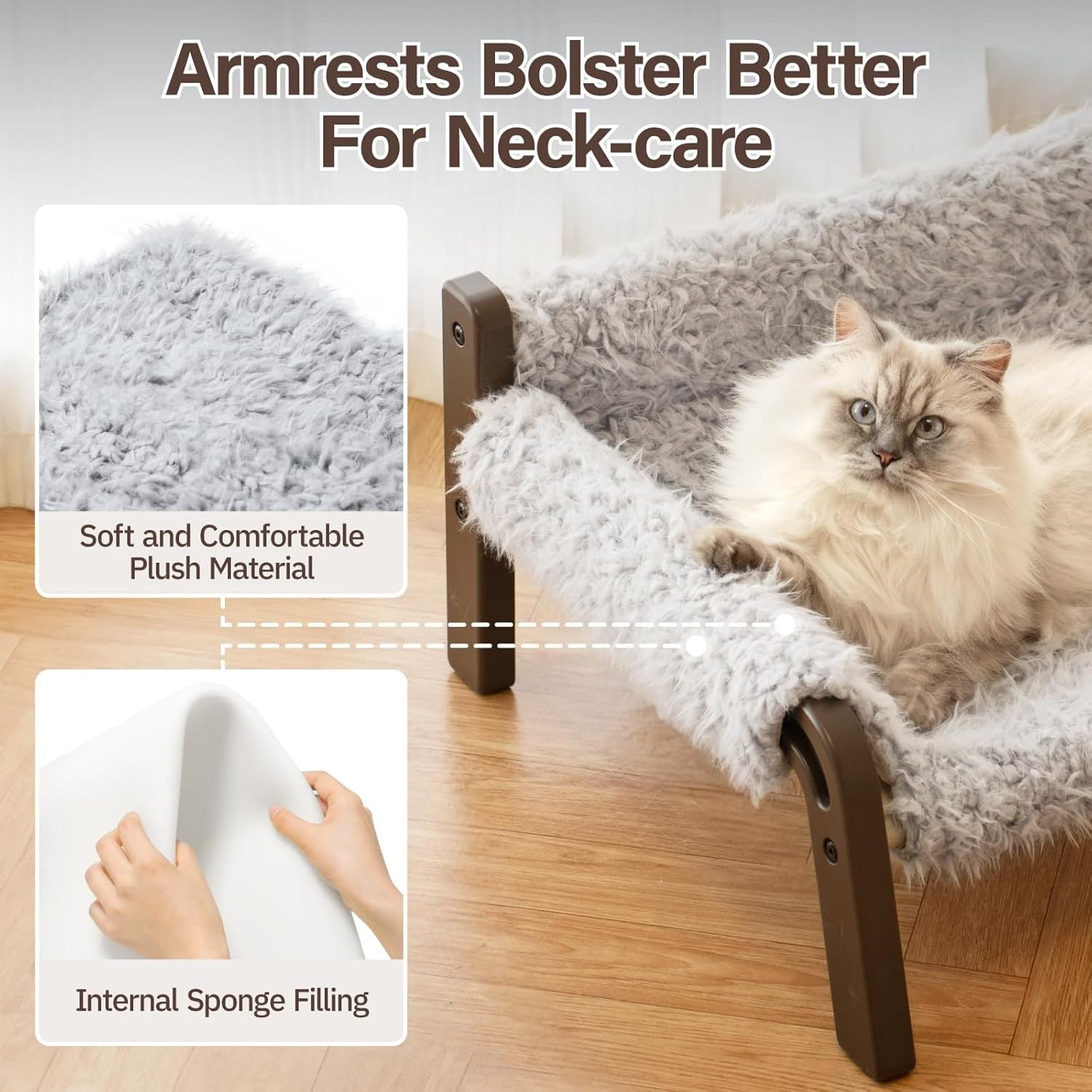 - Elevated Pet Bed with Comfortable Sleeping Space: This pet bed is suitable for both cats and small dogs. It features an adorable and soft faux fur surface, with plush sleeping mat, and armrests that offer excellent cushioning support for their heads and necks, creating a comfortable sleeping spot
