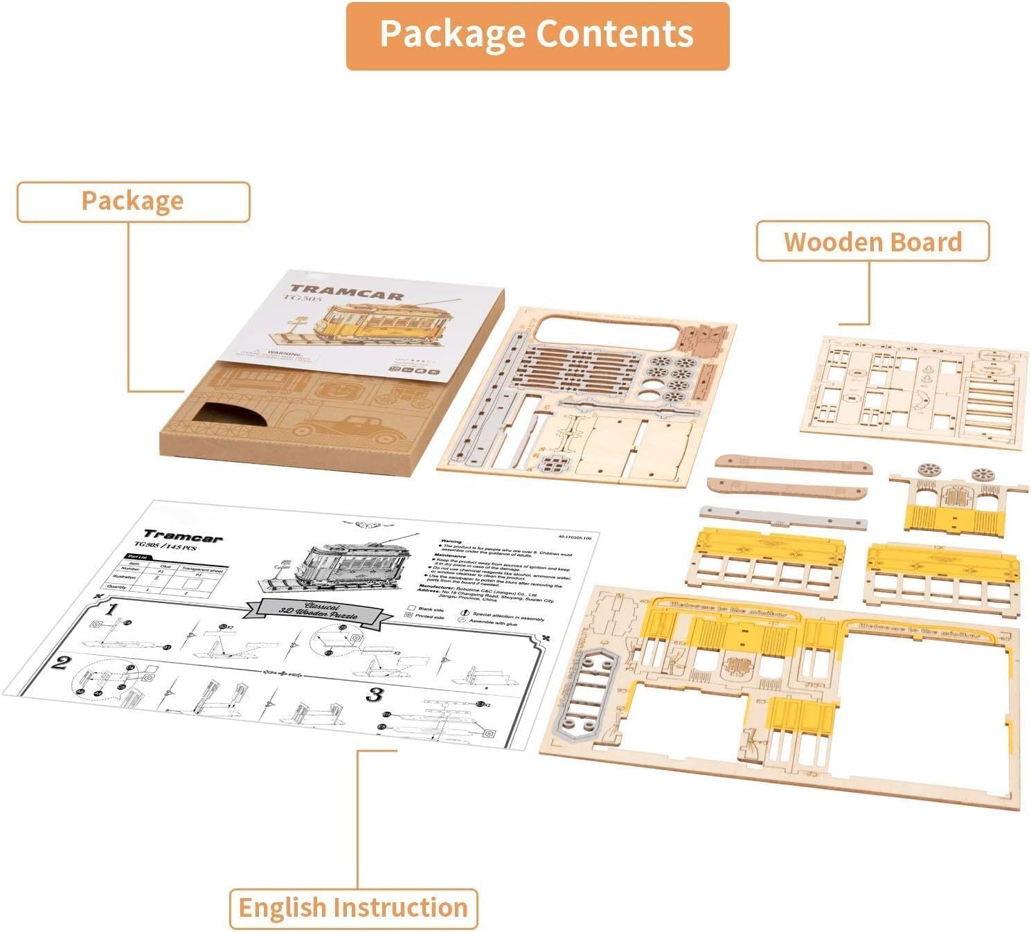 ROBOTIME 3D Puzzle Tram Car Wooden Model Kits For Adult To Build Your Own Laser Cut Jigsaw Building Construction Crafts Kits And Best Birthday Gifts TG505