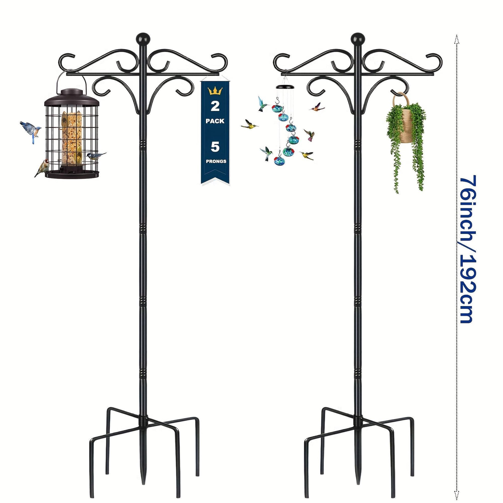Two Heavy Duty 76 Inch Outdoor Metal Shepherd's Hooks Traditional Double Bird Feeder Pole With Five Finger Adjustable Plant Hooks Suitable For Garden And Wedding Decoration Suitable For Bird Feeders P